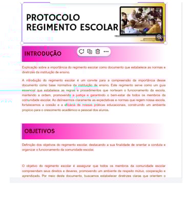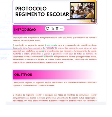 “O regimento escolar expressa a identidade da escola, regulamenta sua organização e orienta as ações pedagógicas e administrativas, sendo fundamental para o funcionamento democrático da instituição.”